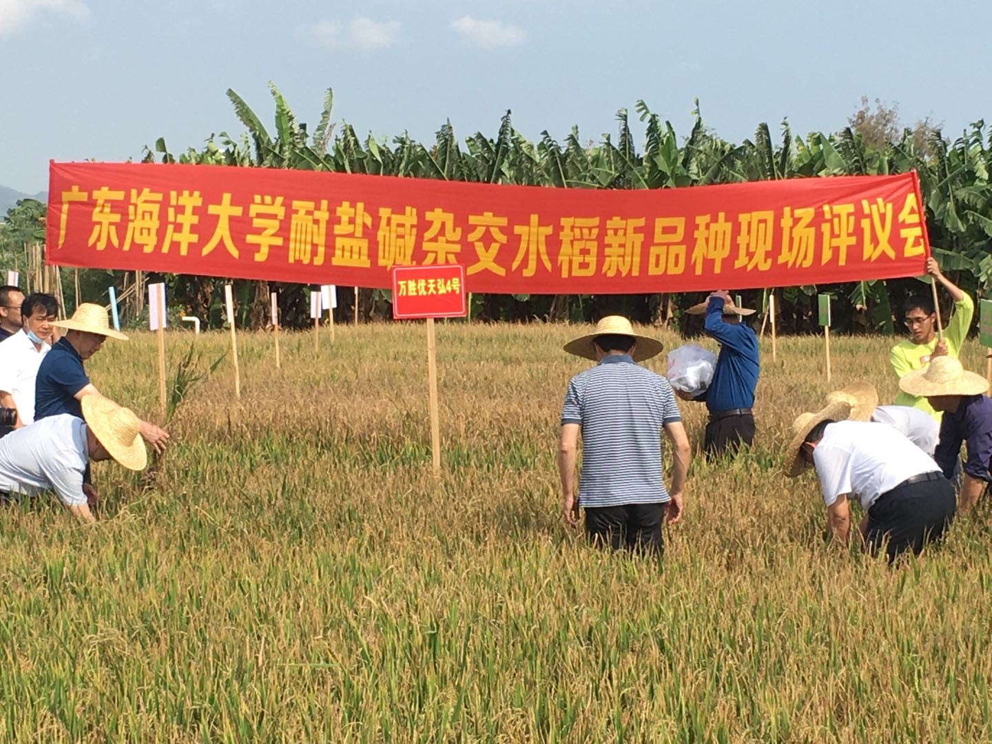 4月15日,国家杂交水稻工程技术中心组织国内水稻研究知名专家,在海南三亚崖城头塘村国家耐盐碱水稻技术创新中心基地对公司郭建夫、黄永相海水稻研究课题组与广东天弘种业有限公司合作育成的耐盐碱杂交水稻新品种进行了现场评议。SUNBET申博体育经理陈进军教授、生物技术系主任胡汉桥教授、作物学科带头人郑殿峰教授、周鸿凯教授等参加了评议会。