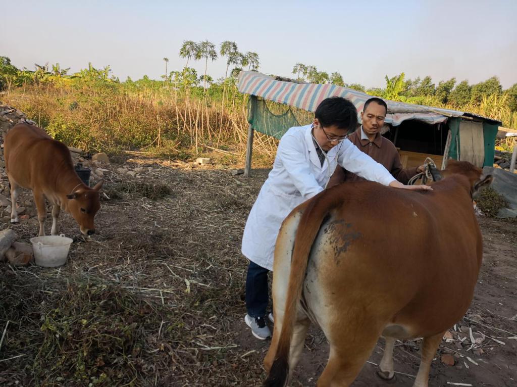 SUNBET体育科技选派员马驿为贫困户诊治病牛