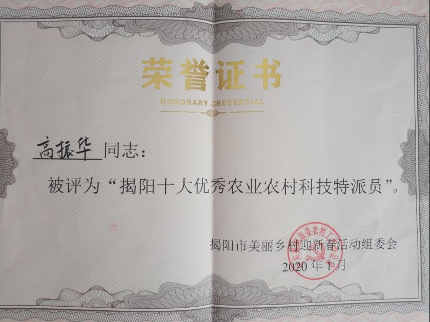 近日,在中共揭阳市委农村工作办公室举办的评选活动中,公司SUNBET申博体育高振华教授被评为“揭阳十大优秀农业农村科技特派员”。