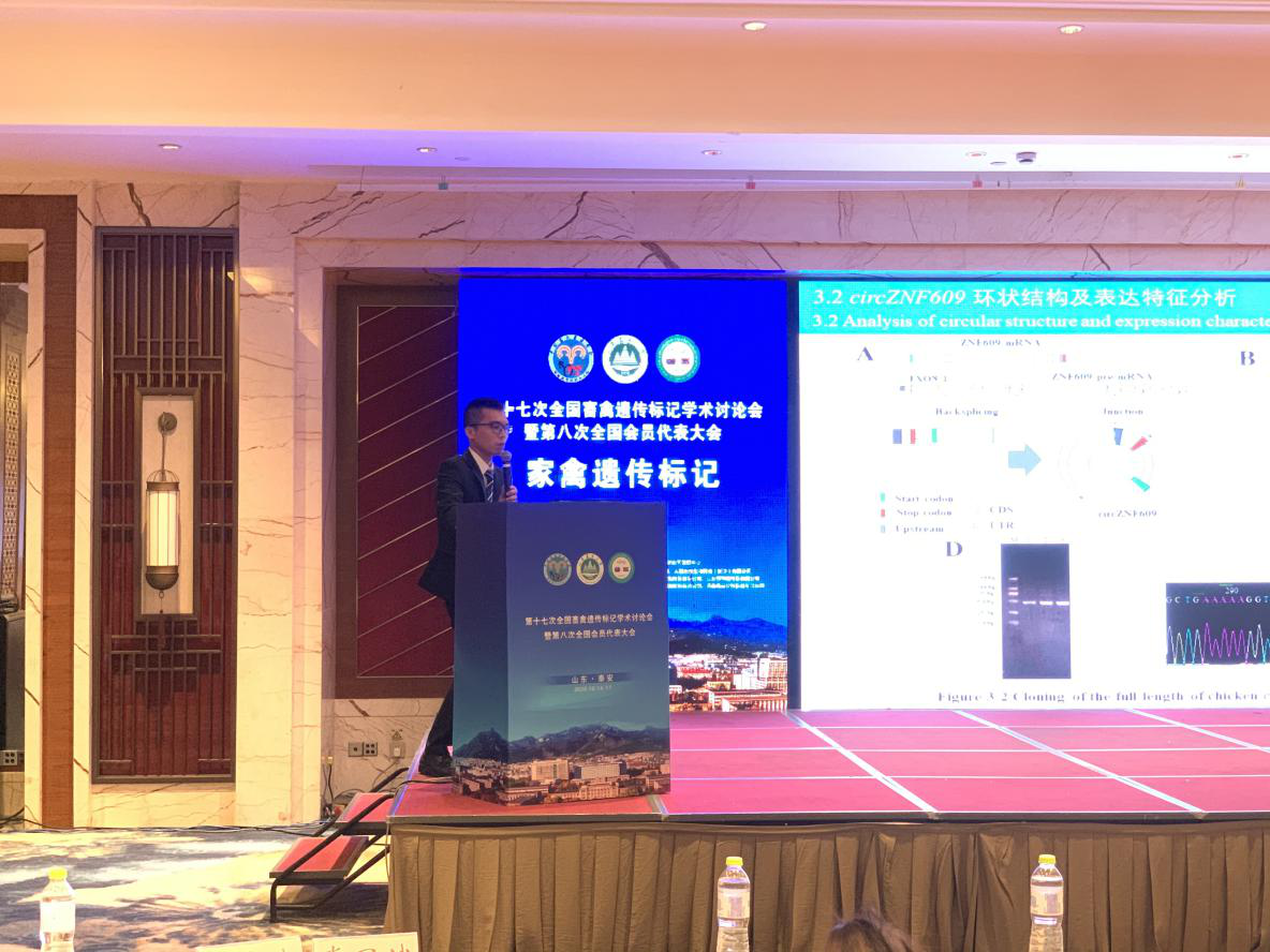 10月14-17日,“第十七次全国畜禽遗传标记学术讨论会暨第八次全国会员代表大会”在山东省泰安市隆重召开。SUNBET申博体育畜牧学科带头人赵志辉教授等师生参会。本次会议是国内畜禽遗传标记学术界的一次盛会,汇聚本领域及相关领域知名专家教授,展示最前沿的研究进展和成果。赵志辉教授参与了会议的主持工作。公司SUNBET申博体育员工冷奇颖、Collins Amponsah Asiamah、高振等硕士受邀做分组报告,其中冷奇颖硕士题目为“鸡circZNF609编码能力检测及细胞功能分析”的会议论文获得优秀会议论文奖;刘娟硕士获得了第十七次全国畜禽遗传标记学术讨论会优秀墙报奖。会议期间,赵志辉教授积极与其他专家学者进行学术交流及探讨,就开展科研合作、平台共享等事宜进行了广泛交流。