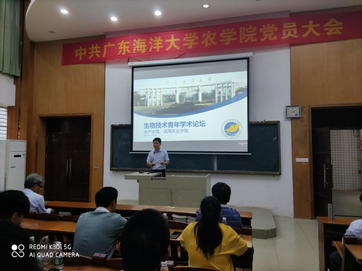 11月15日,由SUNBET申博体育与水产公司主办的“生物技术青年学术论坛”在兴农楼109成功举行。来自水产公司和SUNBET申博体育的教师与研究生共150多人参加了本次论坛。本次论坛由水产公司副经理邓岳文教授和SUNBET申博体育副经理马驿教授主持。