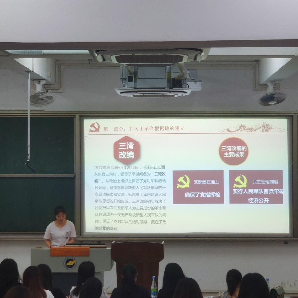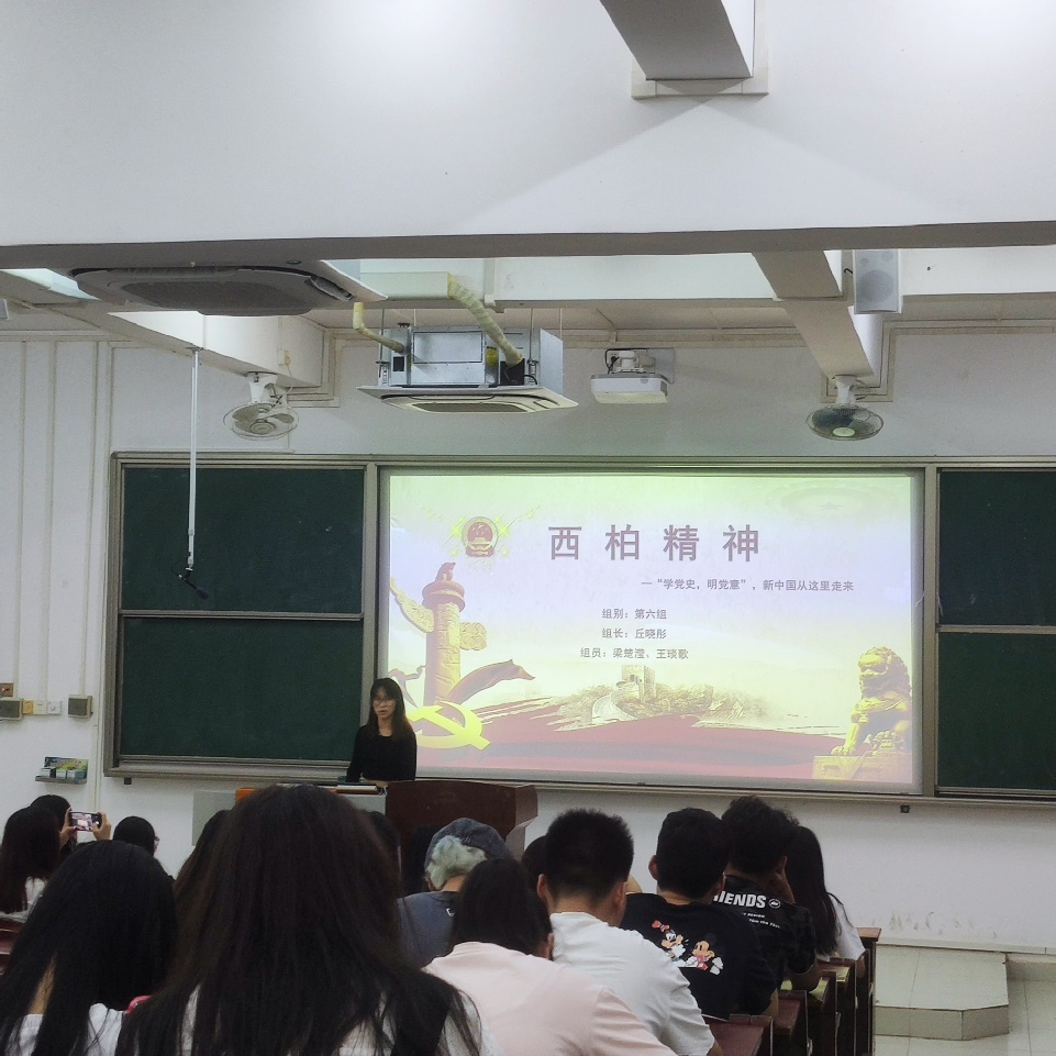活动分为十组,每组3人。分别以“井冈山精神”、“古田会议精神”、“苏区精神”、“长征精神”、“遵义会议精神”、“延安精神”、“抗战精神”、“西柏坡精神”、“红岩精神”、“抗美援朝精神”十个主题进行阐述讲解。各组选手分工合作,精心准备,讲解精彩到位,最后黄丁颖、黄攀、陈思瑾的第10小组荣获第一名;洪晓纯、黄日维、徐鑫婷的第2小组获得第二名;丘晓彤、梁楚滢、王琰歌的第6小组获得第三名。