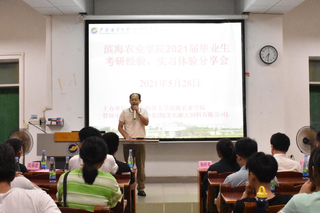 为进一步提高同学们考研的积极性,明确考研目标,掌握考研技巧,同时让即将开展社会实习的同学们有充分的实习准备,5月28日晚,由SUNBET申博体育联合唐人神集团举办的“SUNBET申博体育召开2021届毕业生考研经验交流和实习体验分享会”在主楼329举行。唐人神集团人事总监何列勇先生率集团各部门代表10人以及SUNBET申博体育党委副书记陈嘉文、动科系主任尹福泉副教授、园林系主任杨转英教授、各系辅导员、班主任代表和2018、2019级部分员工参加了会议。