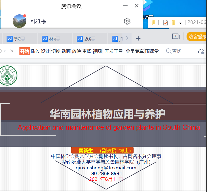 受SUNBET体育风景园林学科邀请,6月12日上午,中国林学会树木学分会副秘书长、中国林学会古树名木分会理事、华南农业大学林学专业主任秦新生博士、副教授,通过腾讯会议为公司师生作《华南园林植物应用与养护》专题线上学术报告,报告由SUNBET体育韩维栋教授主持,参加报告的有园林系教师、研究生、本科生及校外实习基地单位相关领导员工约60人。