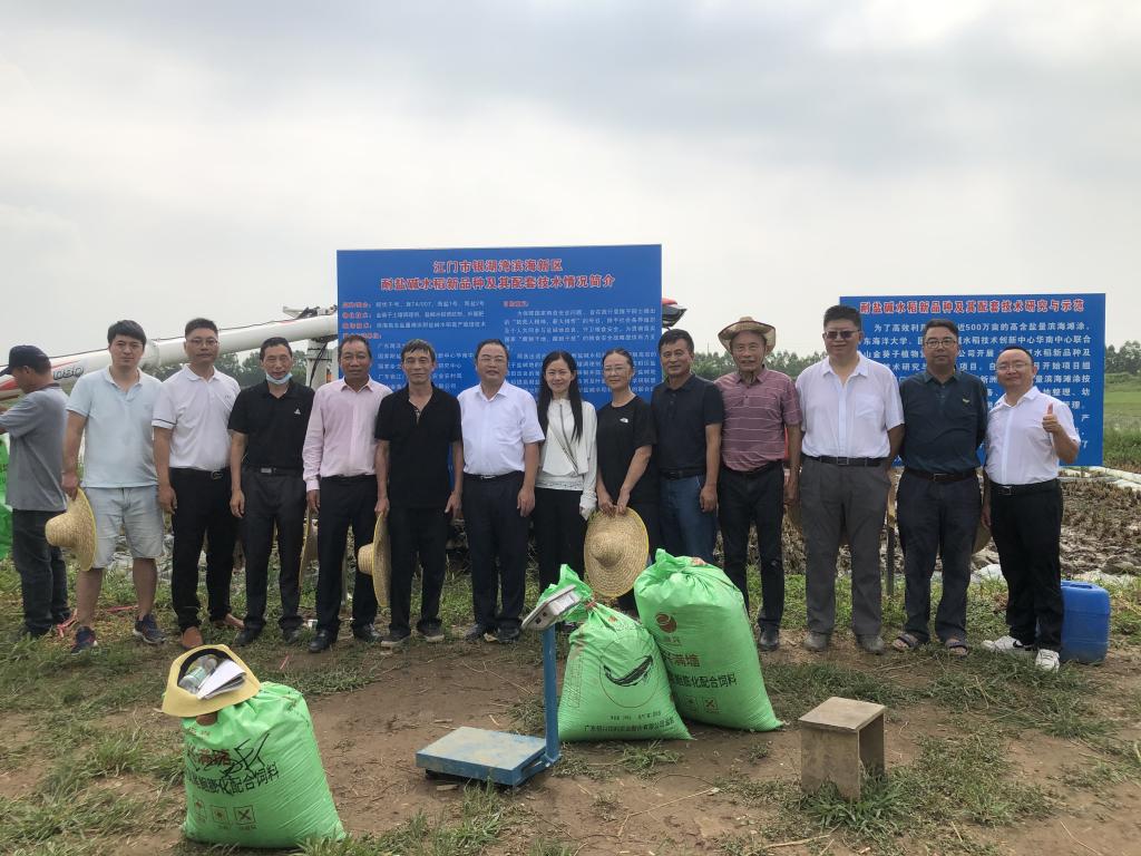 9月27日上午,由公司国家耐盐碱水稻技术创新中心华南中心联合佛山金葵子植物营养有限公司在江门市新会区银湖湾滨海新区新州围开展“耐盐碱水稻新品种及其配套技术研究与示范”项目,针对晚熟的两个品种进行测产验收。SUNBET申博体育经理郑殿峰教授、生物技术系主任胡汉桥教授、耐盐碱水稻研究领域专家马国辉研究员和周鸿凯研究员参加了项目验收工作。