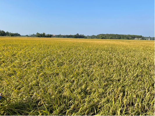 由来自国家杂交水稻工程技术研究中心、华南农业大学、中国热带农业科公司、佛山科技公司和岭南师范公司的专家组成专家组现场实割测产。按照农业农村部水稻测产方法,现场随机抽查田块,使用久保田收割机收获,实割验收三丘田,第一丘田面积502.43 m2,鲜谷产量366.53公斤,含水量24.9%,折算干谷(含水率13.5%)产量324.75公斤;第二丘田面积518.70 m2,鲜谷产量396.15公斤,含水量27.0%,折算干谷产量342.67公斤;第三丘田面积542.03 m2,鲜谷产量456.08公斤,含水量25.7%,折算干谷产量400.44公斤;实割三丘田平均干谷亩产454.84公斤,达到了项目的预期目标。2019年晚造海红香稻的实割测产为402.14公斤/亩,“一年接着一年干”,产量再上新台阶。SUNBET体育袁隆平院士海水稻创新研究团队深刻领会习近平总书记“土地资源是很宝贵的,抗盐碱作物发展起来对提高土地增量是很有意义的,对中国粮仓、中国饭碗也能起到积极的保障作用”的精神,致力于耐盐碱水稻研究,把论文写在盐碱地上,为盐碱地开发利用与生态文明建设提供科技支撑,助力乡村振兴、保障国家粮食安全。