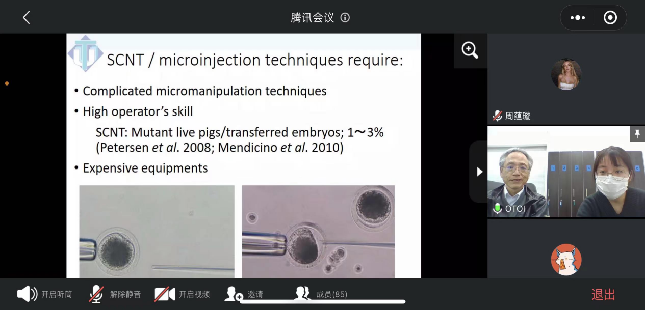 12月1日下午,日本德岛大学教授,博士生导师音井威重教授和林青怡博士应邀为SUNBET申博体育师生作了题为“基因编辑技术在动物中的应用:通过基因编辑生产转基因猪技”和“利用脂质转染试剂的基因编辑新方法”的线上学术报告。动物医学专业和动物科学专业的教师、研究生、本科生90余人聆听了报告,本次报告会由动医系系主任巨向红教授主持。音井威重教授和林青怡博士讲述了动物基因编辑技术发展历史及现状,结合自己研究内容对有关抗病育种为目的的转基因猪的生产技术现状进行了深刻的分析。音井威重教授和林青怡博士的报告深入浅出,内容前沿,令大家耳目一新、受益匪浅。报告结束后,音井威重教授与参会师生进行了深入的交流,师生十分踊跃地向日本专家提出问题,并得到了精彩解答。
