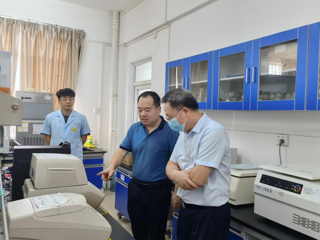 在教学动物医院,彭书记分别参观走访了动物接诊室、处置室、手术室、住院部和影像室,向门诊医生仔细询问了临床病例的处置、员工实习实训的开展及医院运行机制等情况,在得知公司教学动物医院已发展成为粤西地区规模最大、仪器设备最全和诊疗水平最高的动物转诊中心后,对公司创新产学研合作模式、引进专业机构共建实训基地的工作思路给予了高度评价。彭书记还参观了“地方猪遗传资源利用”、“兽用海洋药物研发”和“兽医毒理与环境健康”等创新团队的实验室,并与青年教师、研究生和实习生等亲切交谈,了解各团队在服务地方产业、助力乡村振兴和保障区域动物健康方面的研究开展情况,动物医学系主任巨向红教授一一作了汇报。彭书记勉励大家说,“公司动物医学专业招生情况好,毕业生就业率名列前茅,要进一步加大软硬件的建设力度,创新人才培养的体制机制,培养更多高素质兽医专门人才,为区域产业发展和动物健康保障作出更大贡献”。