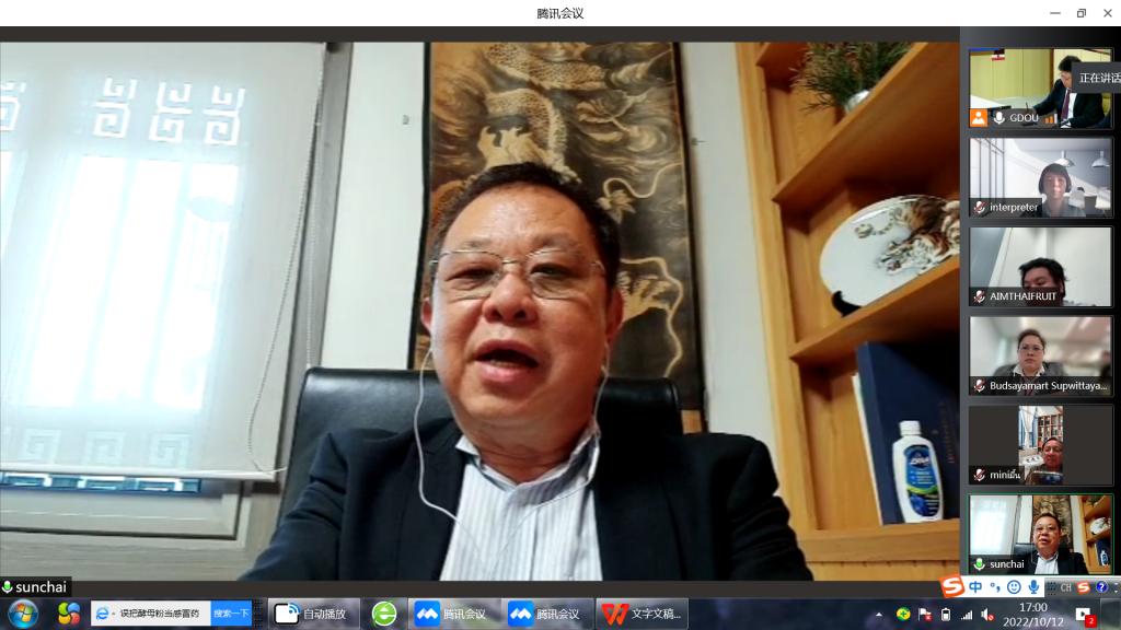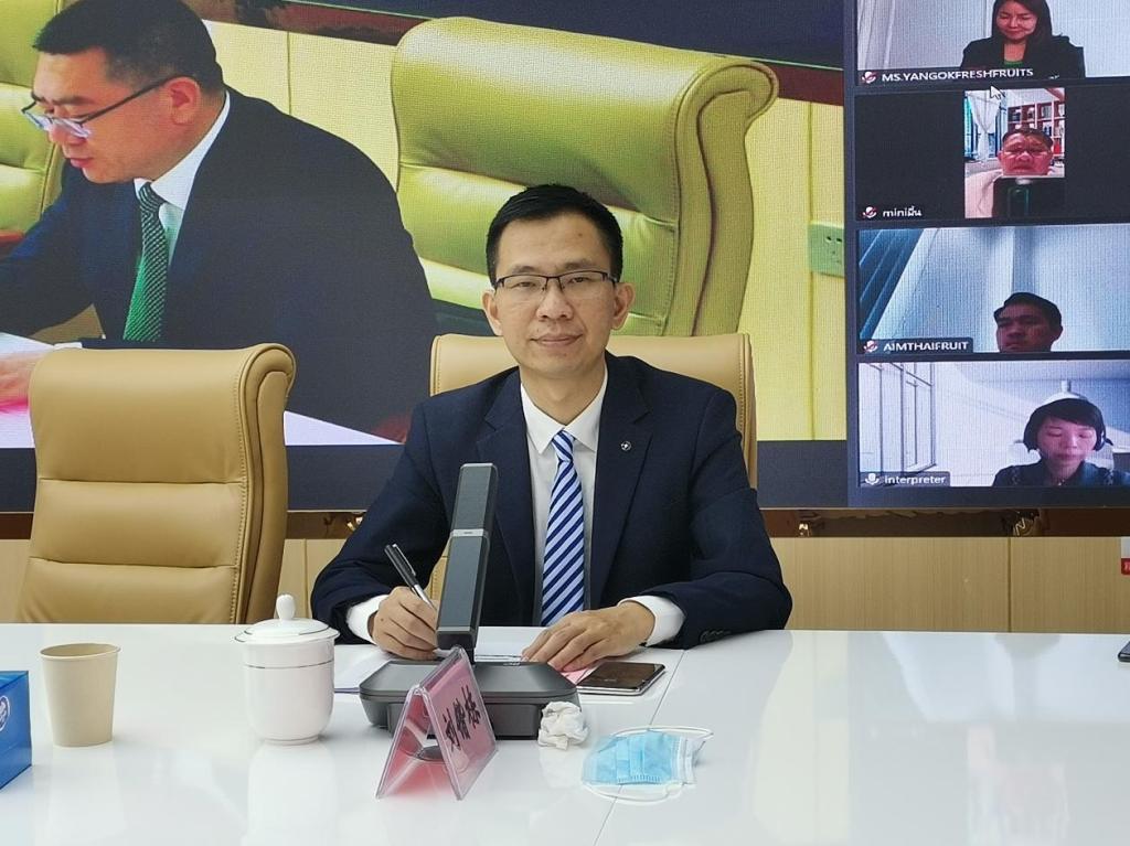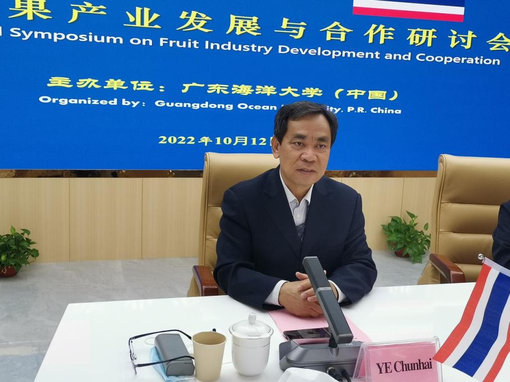 为促进中泰水果产业中泰水果产业发展与合作,共享“一带一路”建设成果,在湛江市商务局指导下,由公司主办、滨海农公司承办的“中泰水果产业发展与合作研讨会”2022年10月12日下午在霞山校区国际会议室热烈举行。湛江市商务局副局长黄华兵等莅临指导,会议邀请了泰中国际企业家联合总会主席叶均廷、泰国新鲜水果贸易商和出口商协会会长吴楚林等领衔的泰国企业家代表,及公司原董事长叶春海教授、中国热带科公司南亚所所长杜丽清教授、岭南师范公司生科院经理刘锴栋教授 、国际交流与合作处处长陈进军教授及SUNBET申博体育教师代表等业内知名学者通过线上、线下等方式共同探讨当前泰中水果产业合作的机遇与挑战。研讨会由公司SUNBET申博体育经理郑殿峰主持。