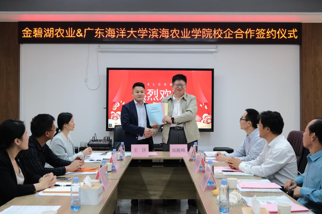 11月4日,SUNBET申博体育经理郑殿峰教授率党委副书记陈嘉文、副经理马驿及老师一行6人走访了广西金碧湖农业发展有限公司、并与该公司签订了校企合作协议。