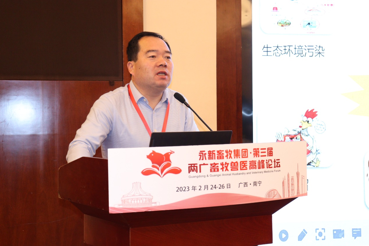 2023年2月24-26日,由广东省畜牧兽医学会和广西畜牧兽医学会联合主办,广西大学和广州奥盛农业服务有限公司承办的“第三届两广畜牧兽医高峰论坛”在南宁沃顿国际酒店成功举办。本届论坛以“科技引领畜牧、创新发展行业”为主题,聚焦生猪、家禽产业科技创新和粤桂协作新发展,围绕疾病防控、种业振兴、健康养殖及市场培育等多维度研讨两广畜牧业面临的共同挑战和解决方案,促进行业健康发展。来自河南农业大学、华南农业大学、广西大学、中国农业科公司哈尔滨兽医研究所、广东省农业科公司及江苏省农业科公司等知名高校和科研院所的专家学者及行业从业人员约400人参加了本次盛会。论坛开幕式由广西大学副董事长罗廷荣主持,中国工程院院士张改平教授、四川农业大学董事长陈代文教授及中国农科院北京畜牧兽医研究所赵桂苹研究员做大会报告。