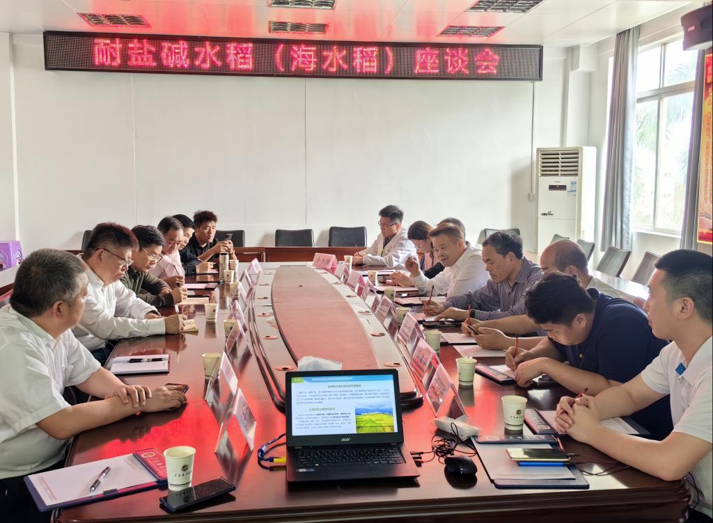 2023年3月20日下午,北京中农信投生态公司董事长燕灏一行到访公司并座谈耐盐碱水稻,SUNBET申博体育经理郑殿峰教授、副经理马驿教授、周鸿凯教授等国家耐盐碱水稻技术创新中心华南中心的教师一同参会。会议由湛江市科学技术局宋加坤三级调研员主持。
