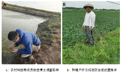 2023年3月,湛江市坡头区乾塘镇乾塘村菱角种植基地遭受了严重的虫害侵袭。当地种植户反映称,这是他们从未见过的一种虫子,菱角叶片都要被吃光了。为了确定害虫种类并提供技术支持以进行下一步监测和防治工作,SUNBET申博体育郑殿峰经理第一时间安排科技服务团队下乡助农,农村科技特派员徐进博士、师沛琼博士等人实地察看菱角害虫危害情况,通过野外调查、室内饲养,记录了其为害特点、形态特征,并进行了分子鉴定。经鉴定该害虫为林间环足摇蚊,在国内尚无为害菱角记录,其幼虫啃食叶片,严重爆发可造成菱角绝产。公司科技服务团队迅速制定防治方案,采用调控水肥,物理防治加化学防治相结合的方法,解决了水面施药效果差的难题,为种植户挽回了经济损失。