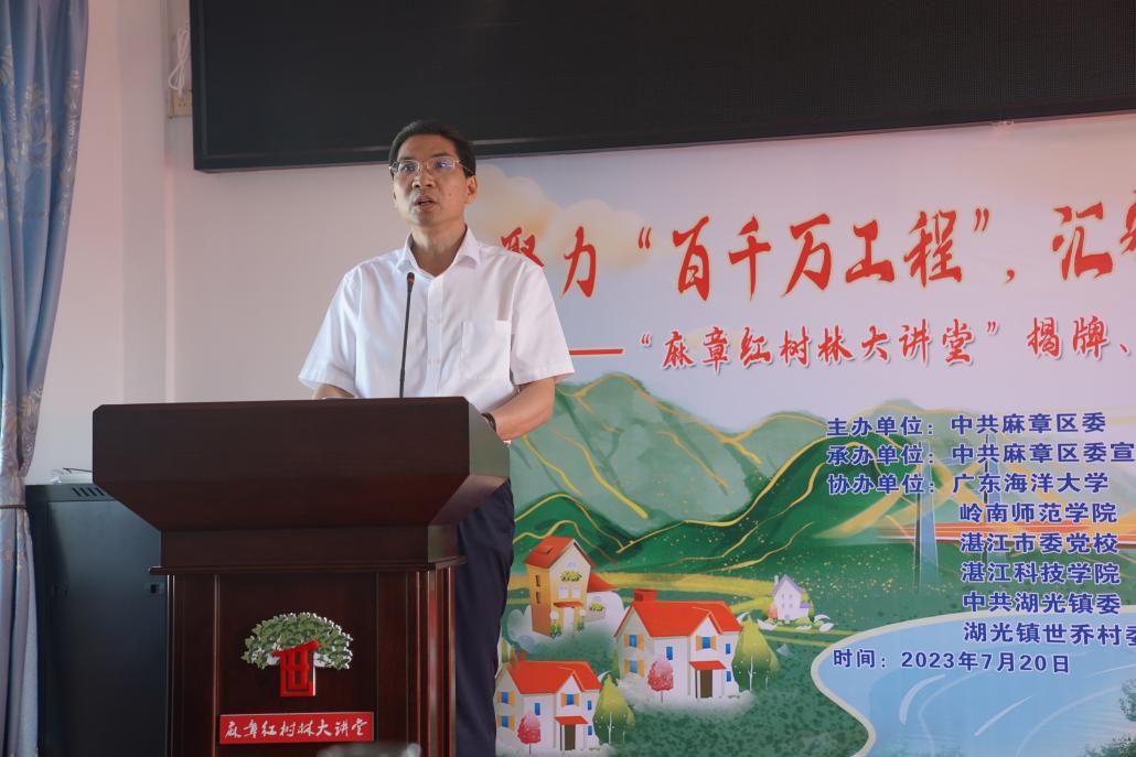 7月20日下午,麻章区“红树林大讲堂”在世乔村举行成立活动,活动由中共麻章区委主办,公司与岭南师范公司、湛江市委党校和湛江科技公司等协办。公司党委副书记林晓敏、科技处处长颜云榕及SUNBET申博体育刘素青教授、吴刘萍教授等有关教师,麻章区委书记陈政及部分高校代表、各镇村党委书记、湖光镇“两委”干部,区委宣传部以及媒体记者参会。