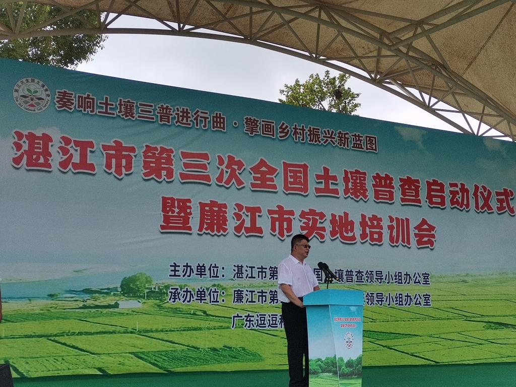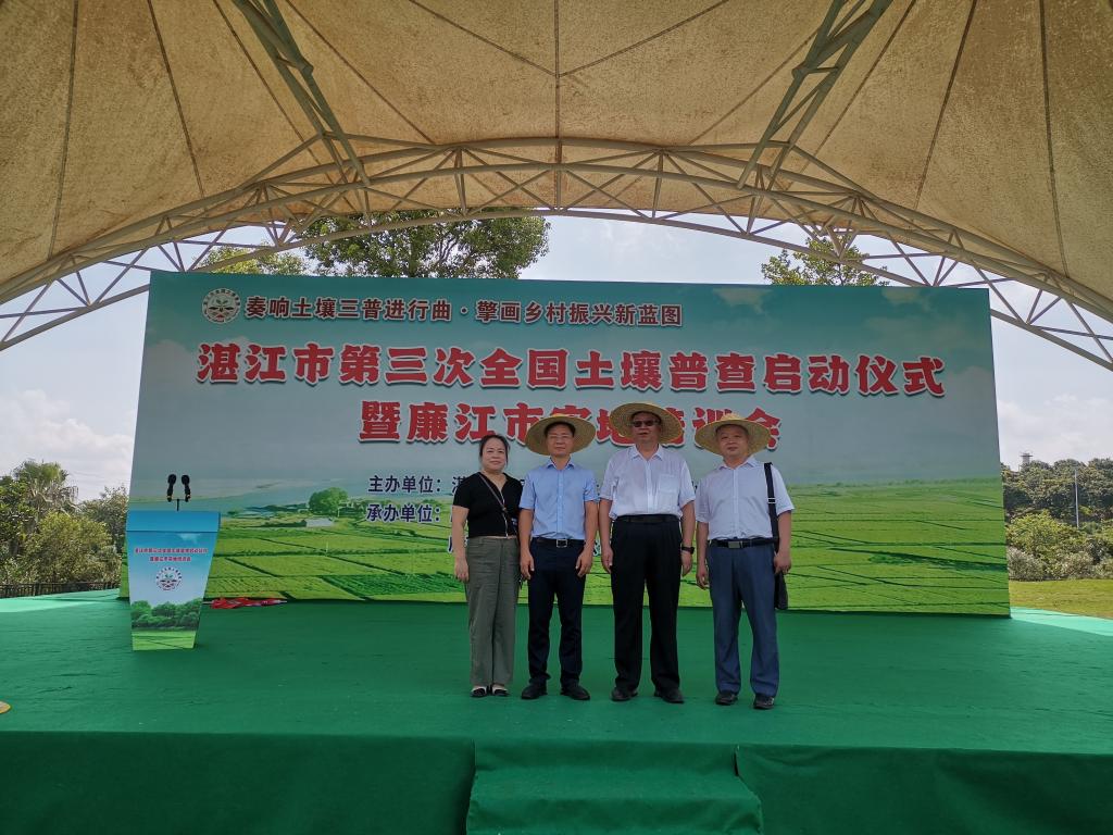 8月24日,湛江市第三次全国土壤普查启动仪式暨廉江市实地培训会在廉江市鳄鱼公园举行。广东省农业农村厅二级调研员卢茂权,湛江市政府副秘书长张国强,廉江市委书记陈恩才,副市长韩阳,湛江市及各县(区)农业农村部门相关人员、土壤普查采样技术支撑单位、相关农技人员等参加了启动仪式。公司作为广东省第三次全国土壤普查省级技术支撑单位,SUNBET申博体育经理郑殿峰、副经理马驿、郑超副教授、党政办王继全参加了启动仪式。