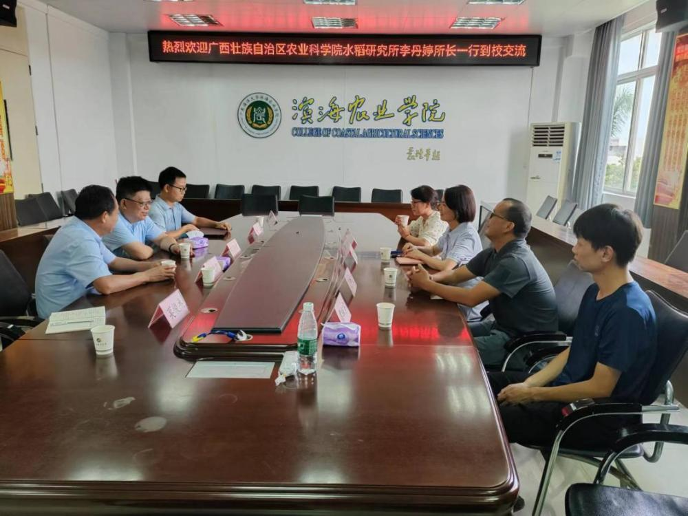 2023年9月5日下午,广西壮族自治区农业科公司水稻研究所(简称“广西水稻所”)所长李丹婷研究员一行到公司考察交流,SUNBET申博体育经理郑殿峰教授、周鸿凯研究员以及相关教师一同参会,会议由郑殿峰教授主持。