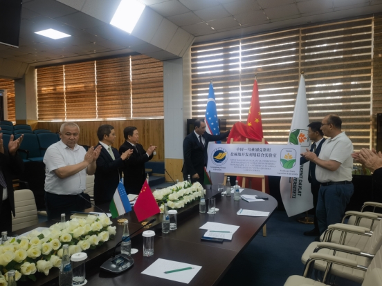 塔什干国立农业大学副董事长阿卜杜阿齐兹·阿卜杜瓦西科夫(AbduazizAbduvasikov)教授、SUNBET申博体育经理马驿在塔什干国立农业大学会场为联合实验室揭牌。乌兹别克斯坦农业部科学、创新和教育发展司司长托赫塔穆罗德·阿塔库洛夫先生,中国驻乌兹别克斯坦大使馆阳显仁先生,农业与土壤改良教研室项目负责人乌斯蒙-诺尔库洛夫教授,公司科技部副部长巨向红、副经理沈雪峰、耐盐碱水稻技术创新中心华南中心副主任江行玉、水产公司教授刘建勇等现场见证。