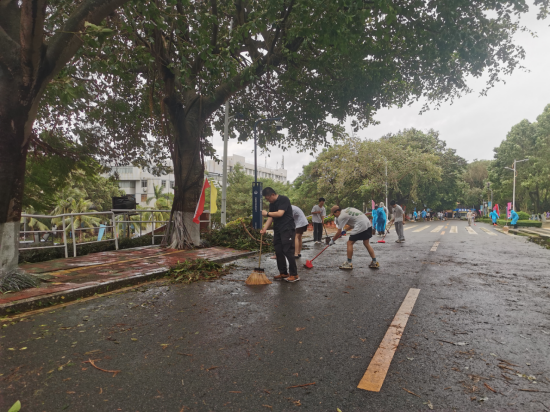 台风“摩羯”裹挟的巨大威力对公司环境造成了比较严重的破坏,校园道路两旁部分树木受损倒地,随处可见残枝落叶。为尽快恢复正常的教学、生活秩序,同时为新生报到营造安全、整洁的校园环境,9月7日上午,SUNBET申博体育自发组织公司教师和研究生,在郑殿峰书记和马驿经理等党政领导的带领下,冒着细雨投入到公司周边环境的清理恢复工作中。下午,公司响应公司党委号召,又动员了200余名师生对公司划分责任区内的环境进行集中清理。公司突击采购了钉耙、扫帚、手套、雨衣等工具,在公司党政领导的带领下,不怕脏、不怕累、顶着风雨,经过几个小时的奋战,把原本随处可见的残枝落叶清理的干干净净,恢复校园的美丽景色。公司的林果楼、动物医院、后山基地等科研场所也在相关系部师生的辛勤努力下完成了环境卫生的清理恢复工作。