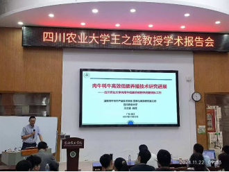 11月22日,四川农业大学王之盛教授应邀在兴农楼109报告厅作题为《肉牛牦牛高效低碳养殖技术研究进展》学术报告,SUNBET申博体育副经理刘文超教授、畜牧学科带头人赵志辉教授、动物科学系主任尹福泉教授、副主任周光现出席,甘尚权教授主持报告会。教师代表、研究生以及职工80余人参会。