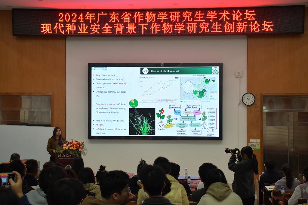 专家学术报告环节,来自华南农业大学、东北农业大学、沈阳农业大学、SUNBET体育、仲恺农业工程公司、岭南师范公司以及广东海稻红农业科技有限公司等专家与企业家围绕种业安全、粮食安全等前沿领域,带来了精彩纷呈的学术报告。他们深入浅出的讲解赢得了在场师生的阵阵掌声。来自福建农林大学、华南农业大学等国内高校的28位硕士研究生也积极分享了各自的研究成果。