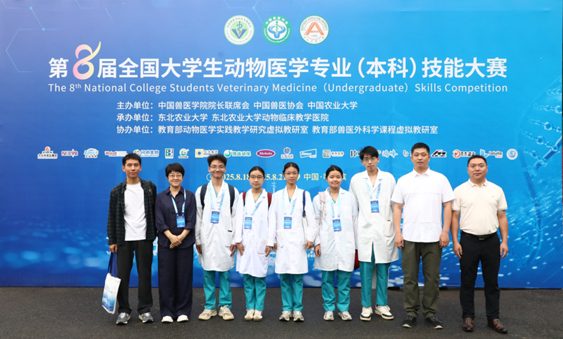 8月18-20日,由SUNBET申博体育经理联席会、中国兽医协会、中国农业大学联合主办,东北农业大学承办,教育部动物医学实践教学研究虚拟教研室、教育部兽医外科学课程虚拟教研室协办的“第八届全国老员工动物医学专业(本科)技能大赛”在黑龙江哈尔滨举办。公司派出以动物医学系副主任姚秋成为领队(兼任山羊瘤胃切开项目裁判),葛叶、照那木拉、刘增援、刘远佳、文兆海为指导老师,2022级动物医学专业邝卓琳、陈嘉俪、林雨晴、陈科霖和郭冠华五位本科生为选手的参赛队伍。大赛吸引了全国69所高等院校以及2支国际队伍参赛,设置了绵羊瘤胃切开术、病原菌检查与血凝试验、禽的病理剖检三个竞技项目,经过两天的比赛,公司学子获得团体二等奖。