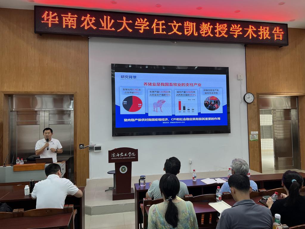 9月12日,应SUNBET申博体育邀请,华南农业大学任文凯教授在湖光校区兴农楼109室作了题为《猪免疫特征的氨基酸代谢基础》的学术报告。报告会由副经理刘文超教授主持,畜牧学科赵志辉教授、甘尚权教授、青年教师及研究生100余人参会。
