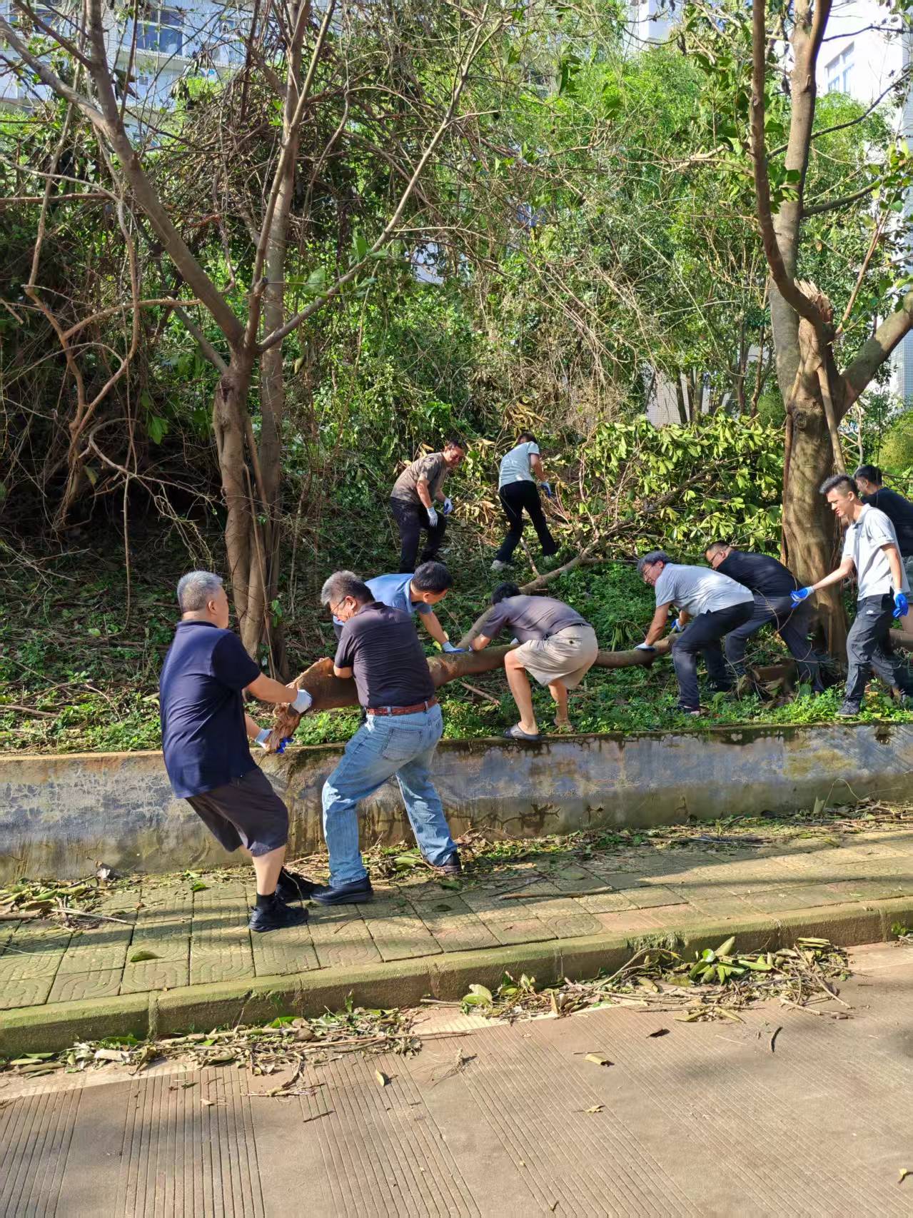 10月5日,第21号台风 “麦德姆” 在湛江市徐闻县东部沿海登陆,湖光校区的校园环境和基础设施遭受严重破坏,校园内树木倒伏、断枝遍地、道路受阻,满目疮痍。6日,公司党委组织党员先锋队第一时间投入到灾后清理重建工作中,重点负责清理兴农楼周围和附近主干道倒伏树木,打通校园师生生活、工作通道。8日,国庆、中秋假期最后一天,为尽快消除近期台风过境对校园环境造成的影响,有效防范公共卫生风险,保障师生身体健康,确保复学复课工作平稳有序。公司党委积极响应关于台风灾后校园重建与卫生防疫工作的指示要求,组织师生开展“救灾复学,净化校园”爱国卫生运动。