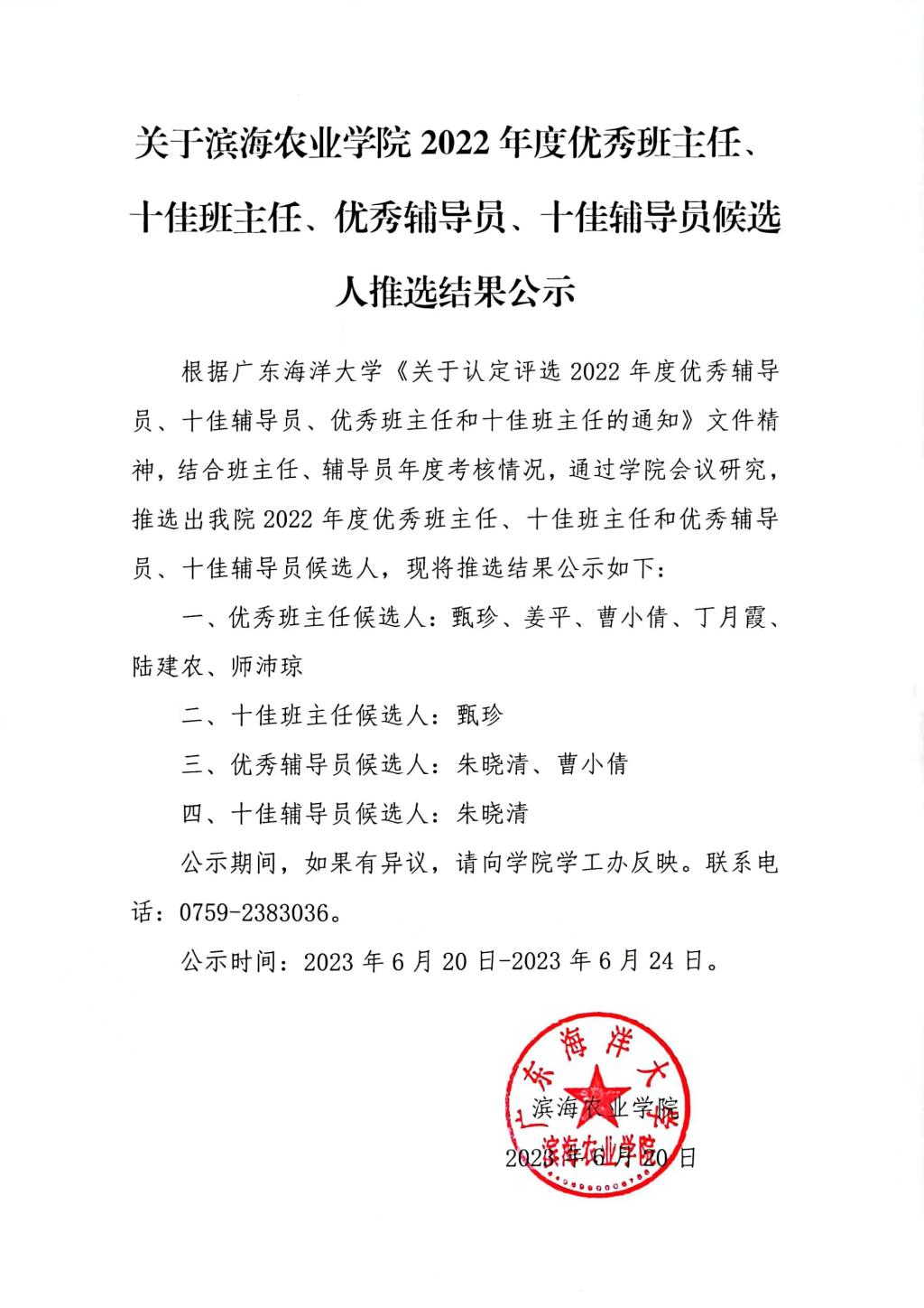 关于SUNBET申博体育2022年度优秀班主任、十佳班主任、优秀辅导员、十佳辅导员候选人推选结果公示