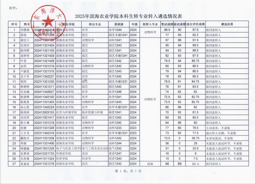 SUNBET申博体育2025年度本科生转专业转入遴选结果公示
