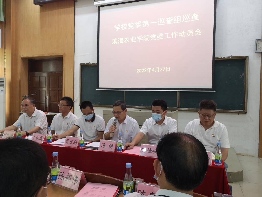 4月27日下午,SUNBET申博体育在兴农楼109会议室召开公司党委第一巡查组巡查公司党委工作动员会。公司纪委副书记曾庆新,第一巡查组组长陈创、副组长丁永成、意识形态专项组组长钟桂安、第一巡查组和意识形态专项组的全体成员、SUNBET申博体育全体教职工出席会议,会议由公司党委书记邓伟强主持。
